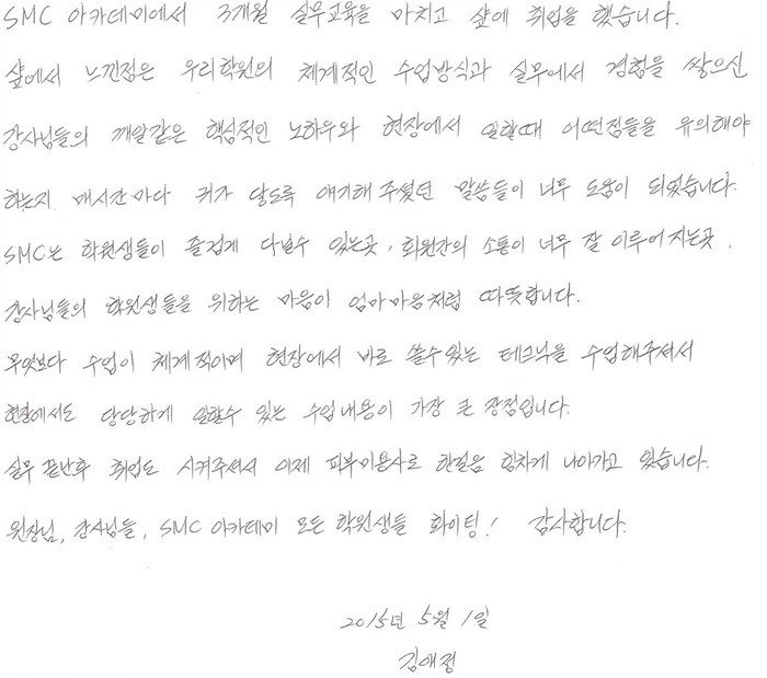 SMC아카데미 본점서울시 종로구 수표로 120 내인빌딩 7층사업자등록번호 : 480-54-00382