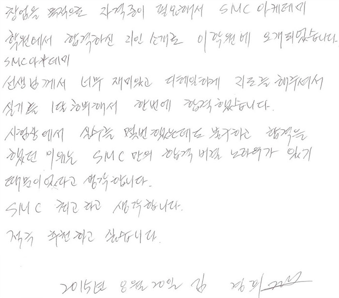 강남SMC아카데미 구로디지털단지역점서울시 관악구 시흥대로 558-1 G밸리마인드 5층, 505호사업자등록번호 : 772-11-01570