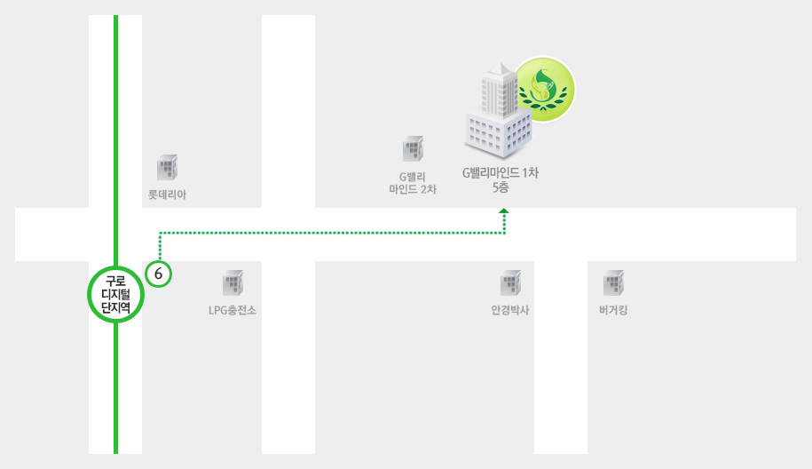2호선 : → G밸리마인드1차 5층, 505호