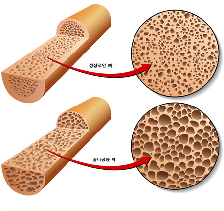 골다공증 문자대로 '뼈에 구멍이 생기는 것'을 의미하며 미국에서는 2천 만명 이상의 사람들이 이병에 걸려 있습니다. 보통, 남성과 여성 모두 40세가 넘으면 뼈의 질량 감소를 경험하는데 골다공증에 걸릴 위험성은 여성들이 훨씬 더 많습니다. 과도한 뼈의 소실은 많은 요인들로 인해 일어나며, 골다공증의 형태도 다양한데 폐경기 이후의 골다공증이 가장 흔한 형태이며 폐경기 이후 여성의 약 1/4이 골다공증에 걸립니다. 또한, 골격 전체가 폐경기 이후의 골다공증에 영향을 받을 수 있는데 대개 척추와 엉덩이, 갈비뼈의 소실이 가장 크며 이 뼈들이 많은 무게를 지탱하기 때문에, 통증과 기형 또는 골절 파손에 민감한 것입니다. 골다공증의 직접적인 결과로, 매년 최소한 1천 5백만 건의 골절 파손이 발생합니다. 이들 중 250,000건은 엉덩이뼈 파손인데, 이는 대부분의 환자들에게 아주 끔찍한 파손입니다. 엉덩이 골절 파손의 12~20%는 아주 치명적인 것으로, 생존자들의 반은 장기 입원 치료를 받아야 하며 여성들의 1/3과 남성들의 1/6이 엉덩이 골절 파손을 경험하게 될 것입니다.