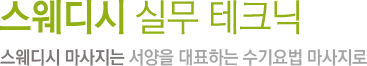- 7) 스웨디시 마사지 관리 시 안정된 호흡조절