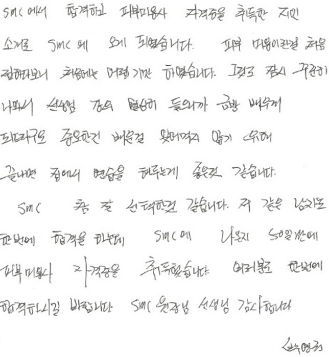 SMC아카데미 본점서울시 종로구 수표로 120 내인빌딩 7층사업자등록번호 : 480-54-00382