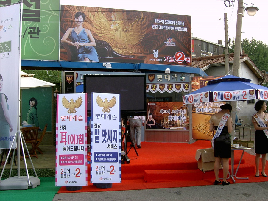 강력한 태풍과 호우가 지나간 뒤 찌는 듯 한 더위가 시작되었다. 마치 이때를 기다렸다는 듯이 협회 측에서 주선해준 이벤트가 시작되었다. 마장동 롯데 캐슬 행사장에서의 발 마사지의 일로 아침 10시부터 저녁 7시까지 진행되었다. 계속되는 무더위와 열악한 환경으로 인해서 생각보다 일이 쉽지는 않았다. 실내의 에어컨이 무색할 만큼 땀은 흘러내리고 그리고 사람들이 계속해서 줄을 이었다. 할머니, 아주머니, 그리고 아저씨 등이 주요 대상 이어었는데 특히 할머니들은 아주 좋아하셔서 매일 출근 도장을 찍듯이 오셨다. “이런 호강은 처음이다”, “시원해서 밤에 잠도 잘 왔다”라고 하시며 연신 손을 잡아주시고 눈을 맞춰 주셨다. 나중엔 가족이나 친구 분들까지 동반하고 오셔서 좀 힘들기는 했지만... 어떤 일도 해낼 수 있을 것이라는 일종의 자기암시를 하게 해 준 특별한 경험이었다.