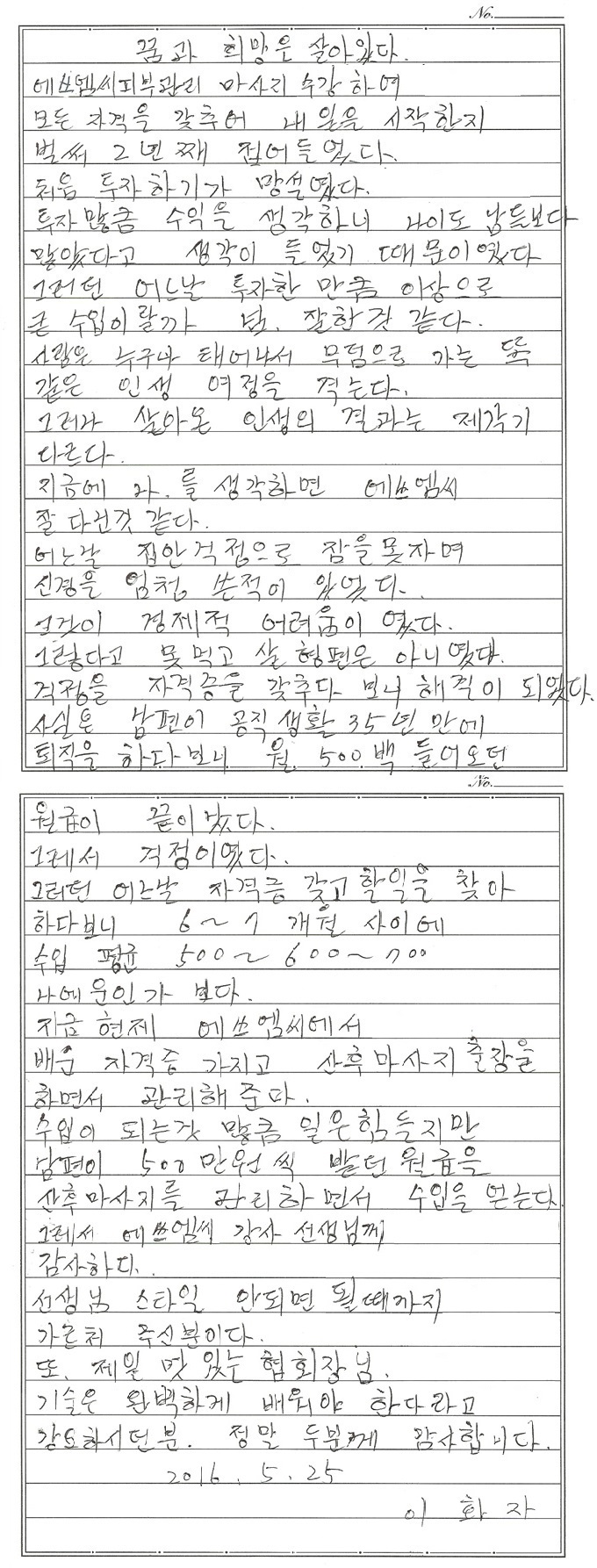 이화자님이 써 주신 최근 근황