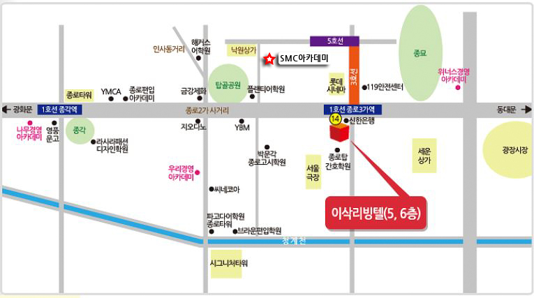 [종로3가] 라온하우스 SMC아카데미 본사 3~5분 [걸어서] |