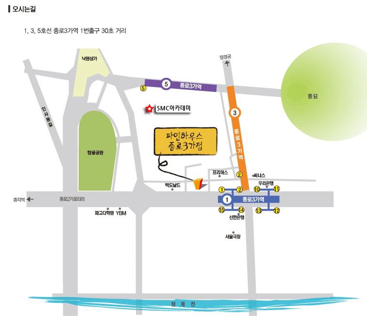 [종로3가] 라온하우스 SMC아카데미 본사 3~5분 [걸어서] |