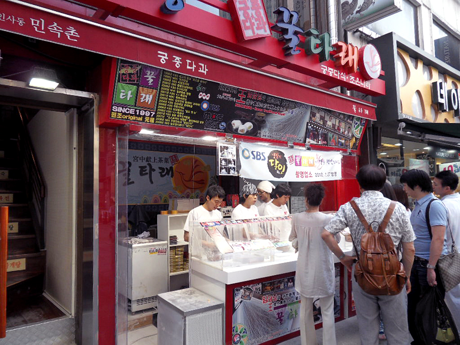 인사동 명물 꿀타레 외국인이 오면 외국어로 장단 맞추어 꿀타레를 만듭니다