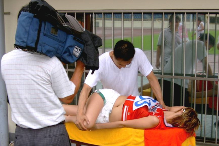 황인근협회장이 가수 테이크 스포츠마사지 시연