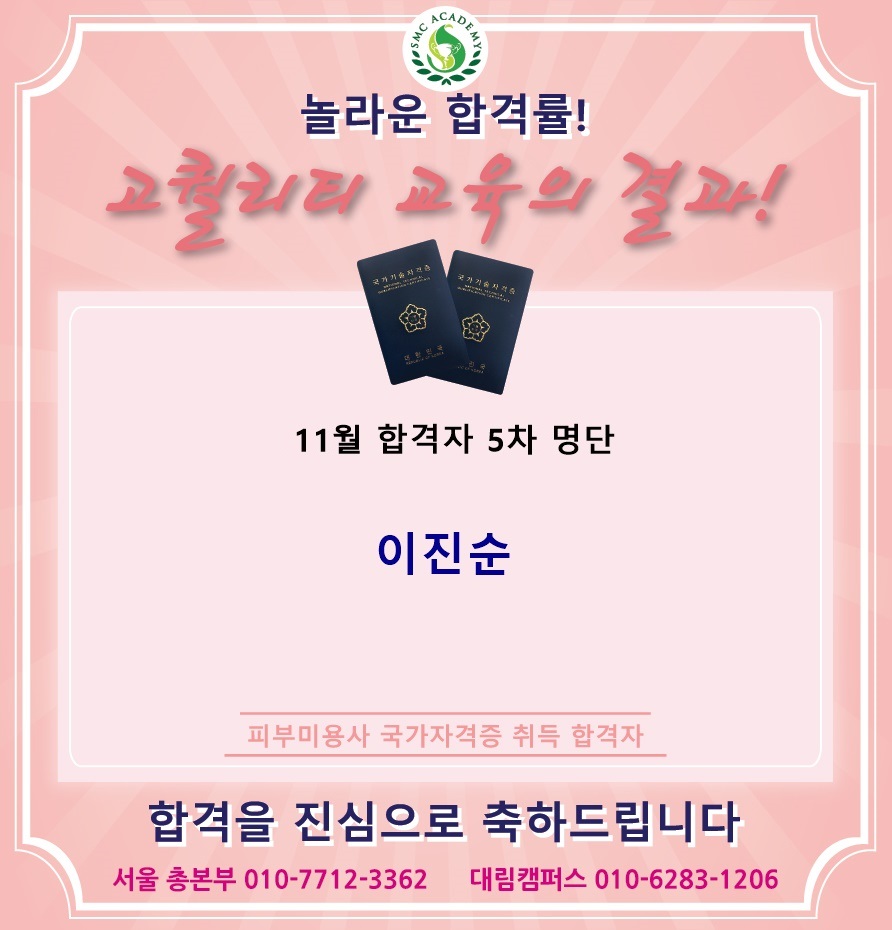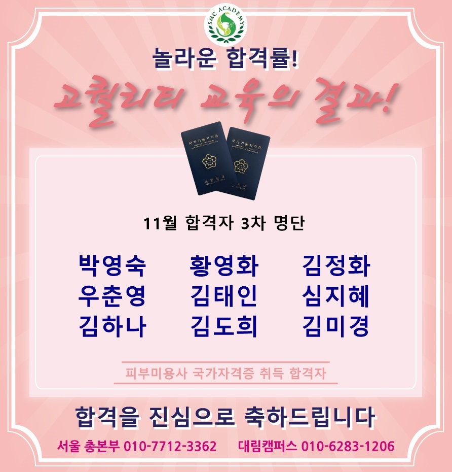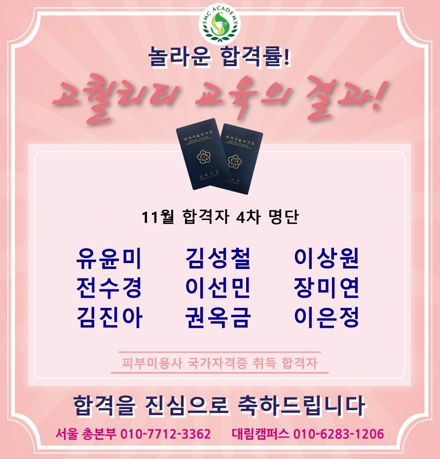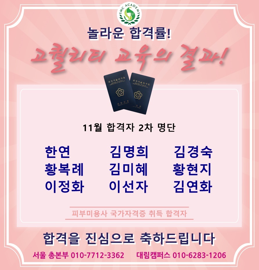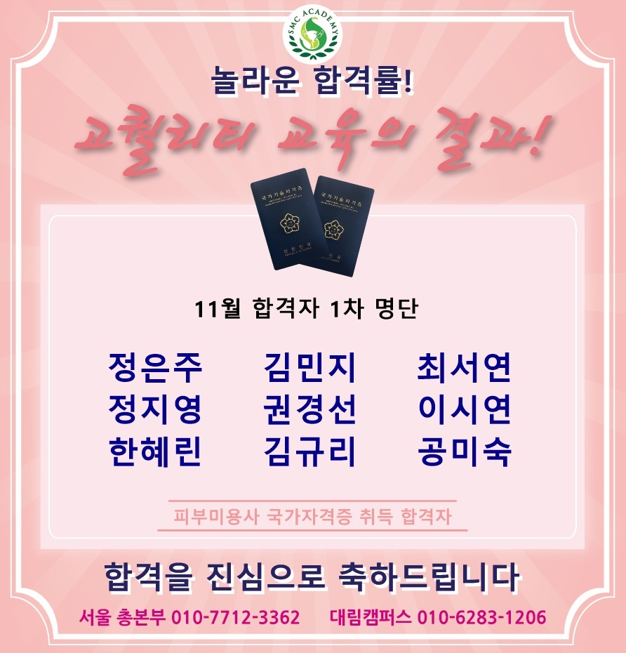 11월 피부미용 국가자격증 취득 합격자 명단 [놀라운 합격률!!] |