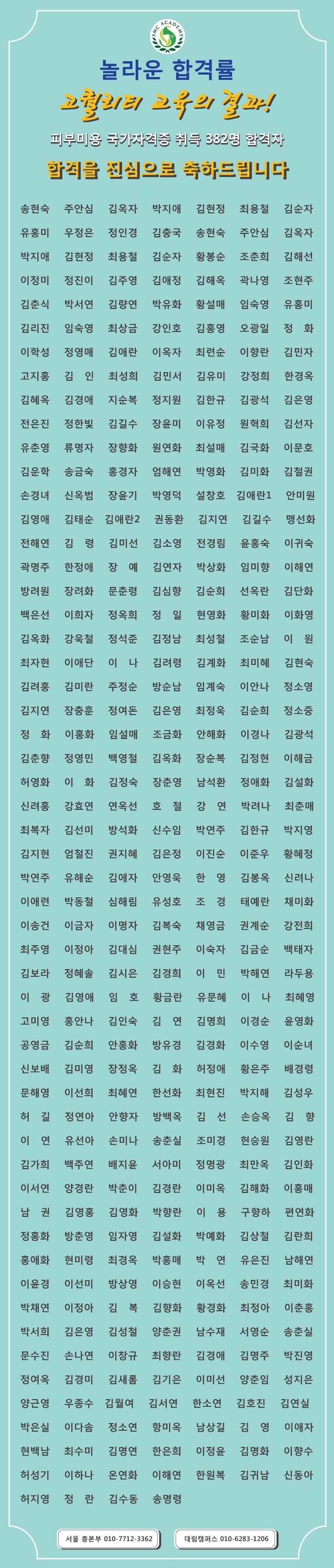 06월 피부미용 국가자격증 취득 합격자 명단 [놀라운 합격률!!] |