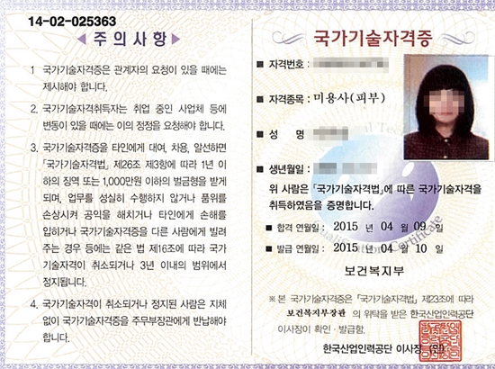 6441 합격! 국가자격증 취득 박정윤님! 피부국가자격증 후기자필    3180