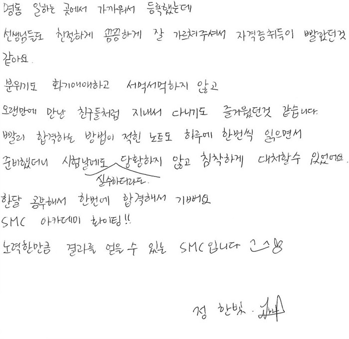 속성 합격!! 1개월만에 국가자격증취득 정한빛님!!