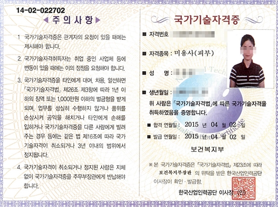 합격! 국가자격증 취득, 황지희님(야간반)! 피부국가자격증 후기자필 |