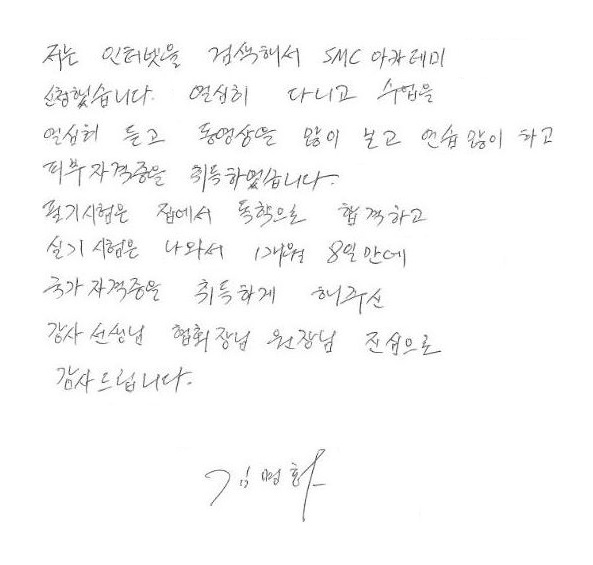 6443 속성합격! 3주만에 국가자격증 취득, 윤한진님! 후기자필    4764