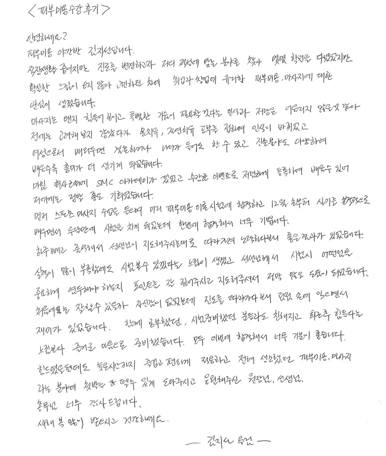 제대로배우고 익혀, 마사지 실력자가 되고싶은 욕심이-김정주님! |