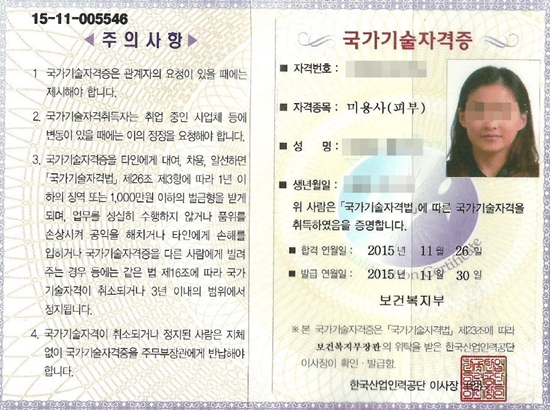 합격! 국가자격증 취득, 황지희님(야간반)! 피부국가자격증 후기자필 |