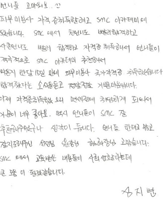 6441 합격! 국가자격증 취득 박정윤님! 피부국가자격증 후기자필    3180