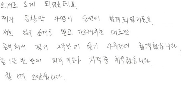 6430 속성합격! 한번에 국가자격증 취득, 김옥자님! 피부국가자격증 후기자필    2865