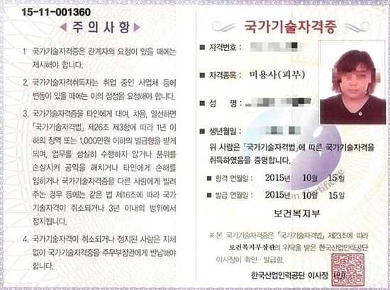 합격! 국가자격증 취득, 황지희님(야간반)! 피부국가자격증 후기자필 |