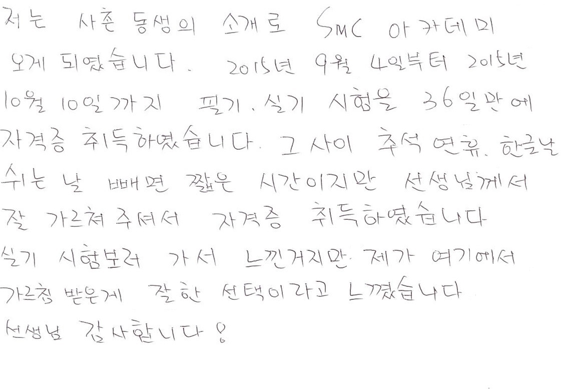 > 수강생 후기 > 자격증취득 수강생 후기