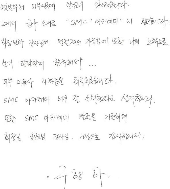 합격! 국가자격증 취득 황선정님(야간반)! 피부국가자격증 후기자필 |