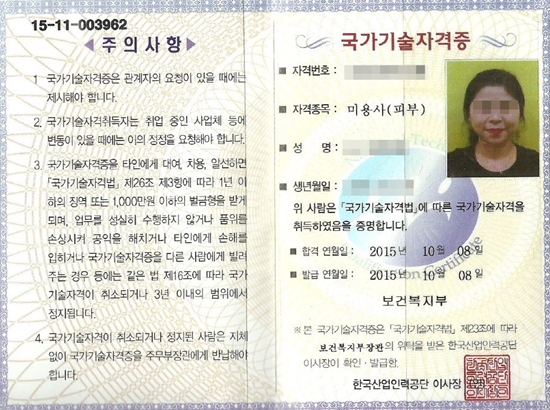 합격! 국가자격증 취득, 황지희님(야간반)! 피부국가자격증 후기자필 |