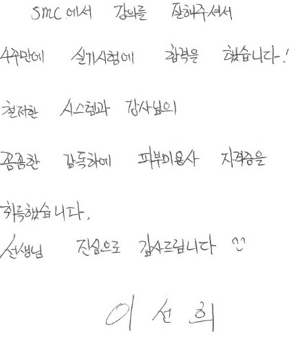 6441 합격! 국가자격증 취득 박정윤님! 피부국가자격증 후기자필    3177
