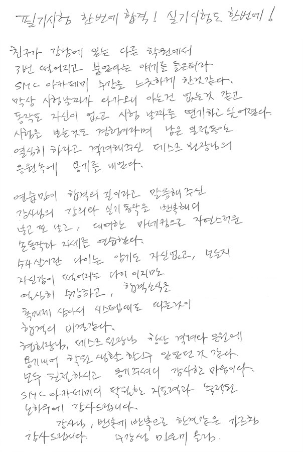 합격! 국가자격증 취득, 김남효님!- 주말반 피부국가자격증 후기자필 |