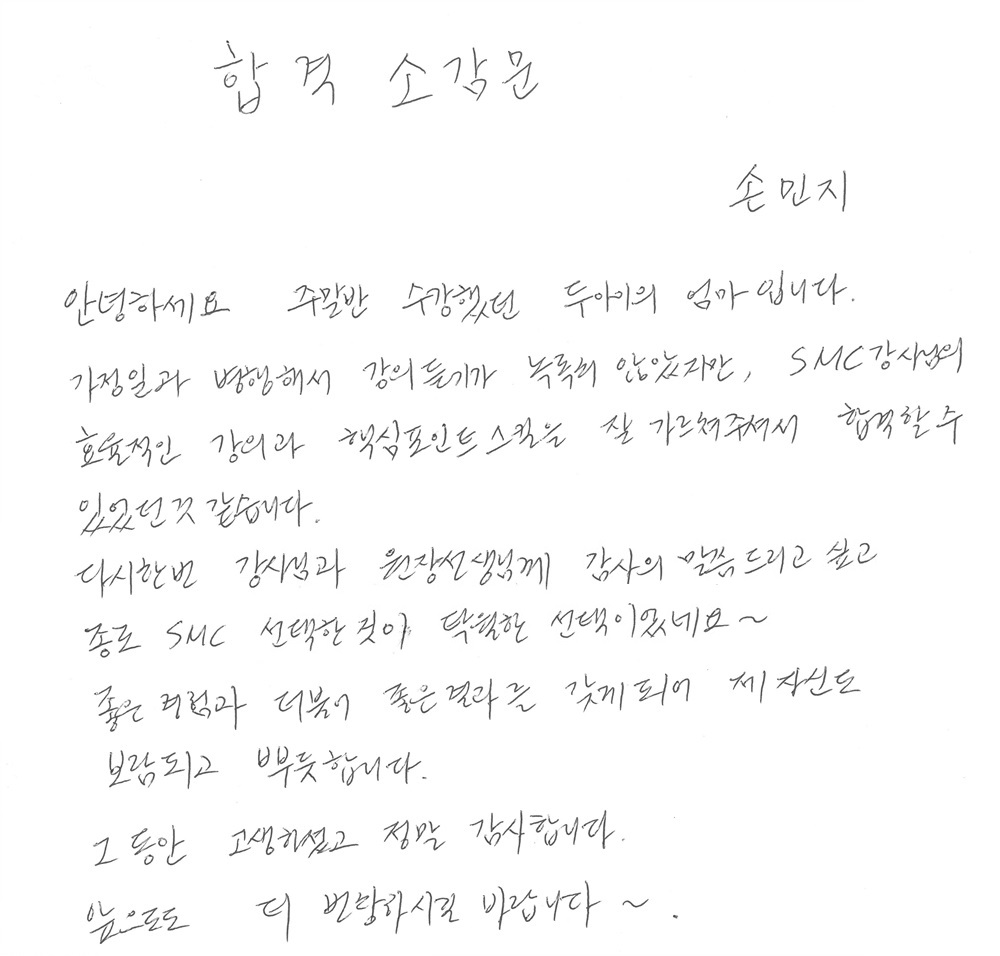 합격! 국가자격증 취득, 손민지님! (주말반)