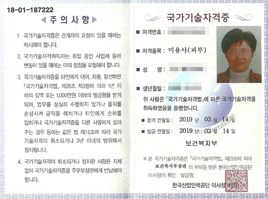 6417 합격! 국가자격증 취득, 김남효님!- 주말반 피부국가자격증 후기자필    2397