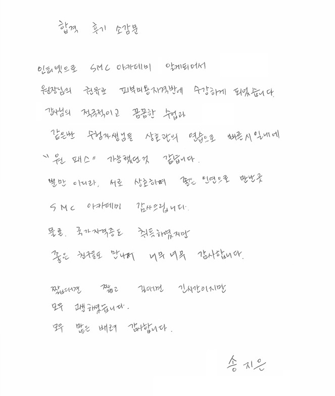 속성합격! 한번에 국가자격증 취득, 송지은님!
