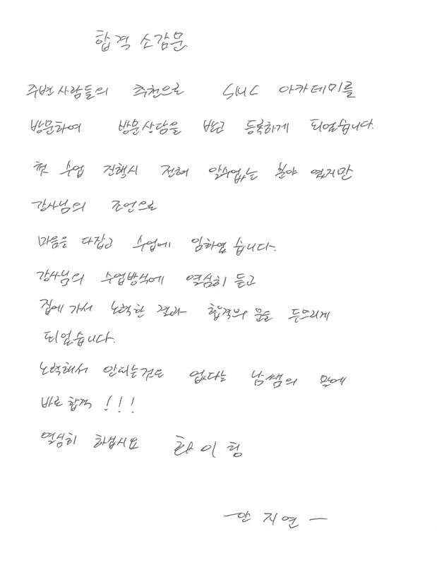 속성합격! 3주만에 국가자격증 취득, 윤한진님! 후기자필 |