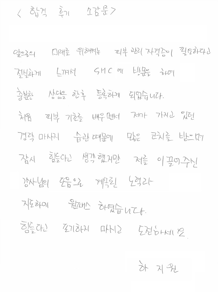 6430 속성합격! 한번에 국가자격증 취득, 김옥자님! 피부국가자격증 후기자필    2866