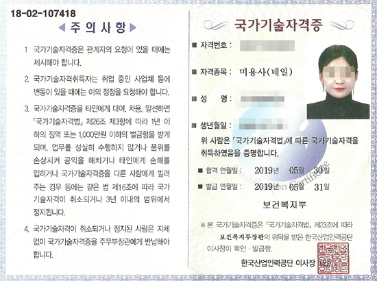 합격! 국가자격증 취득, 황지희님(야간반)! 피부국가자격증 후기자필 |