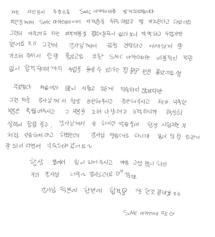 6441 합격! 국가자격증 취득 박정윤님! 피부국가자격증 후기자필    3177