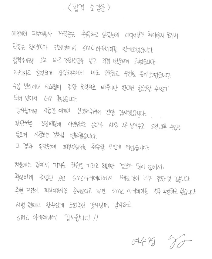 6430 속성합격! 한번에 국가자격증 취득, 김옥자님! 피부국가자격증 후기자필    2866