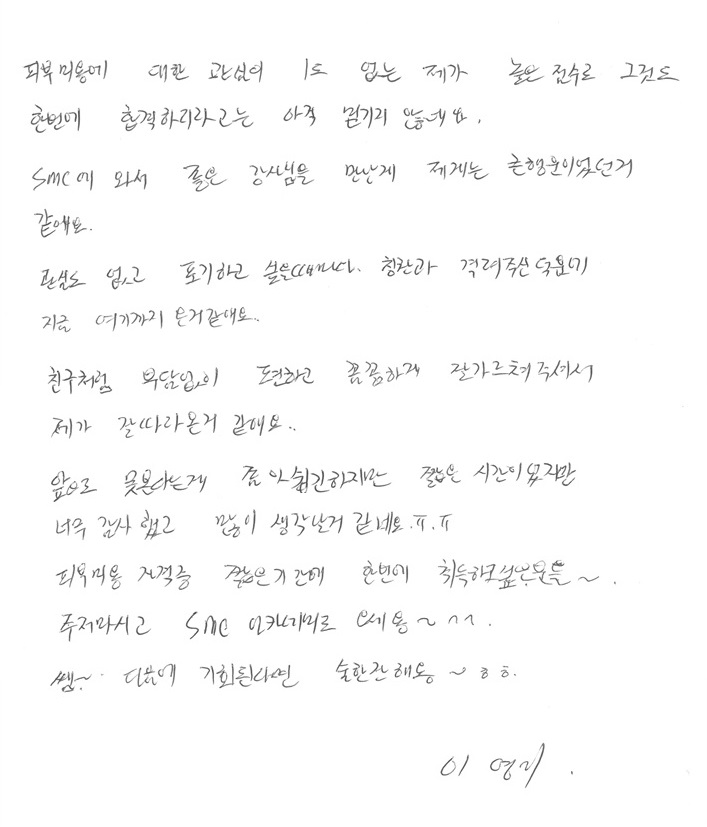 합격! 국가자격증 취득 황선정님(야간반)! 피부국가자격증 후기자필 |