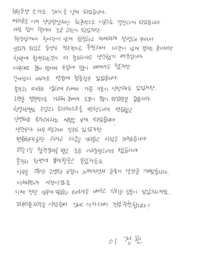 6441 합격! 국가자격증 취득 박정윤님! 피부국가자격증 후기자필    3178