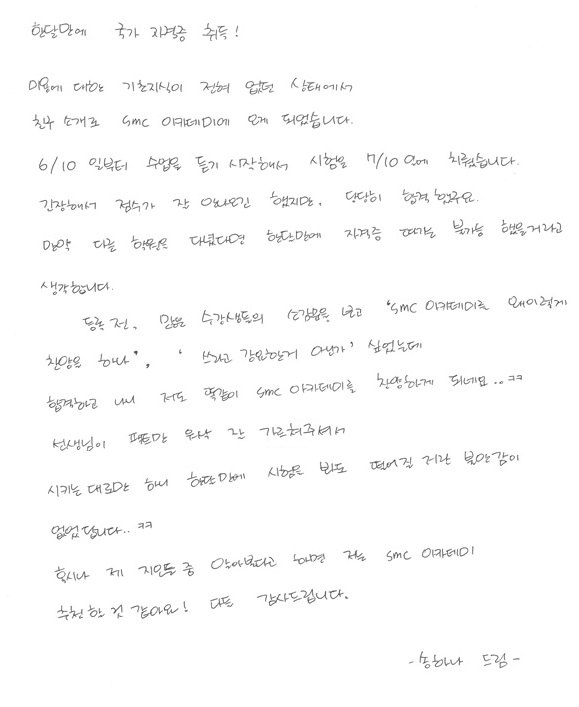 합격! 한달만에 국가자격증 취득, 송하나 님!