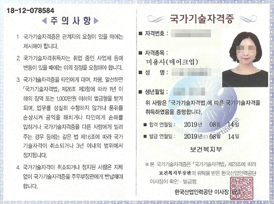 합격! 국가자격증 취득, 황지희님(야간반)! 피부국가자격증 후기자필 |
