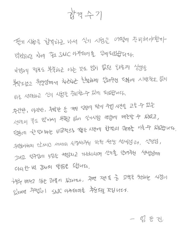 덕분에 한달이라는 비교적 짧은 시간에 합격의 쾌거를 이룰 수 있었습니다.