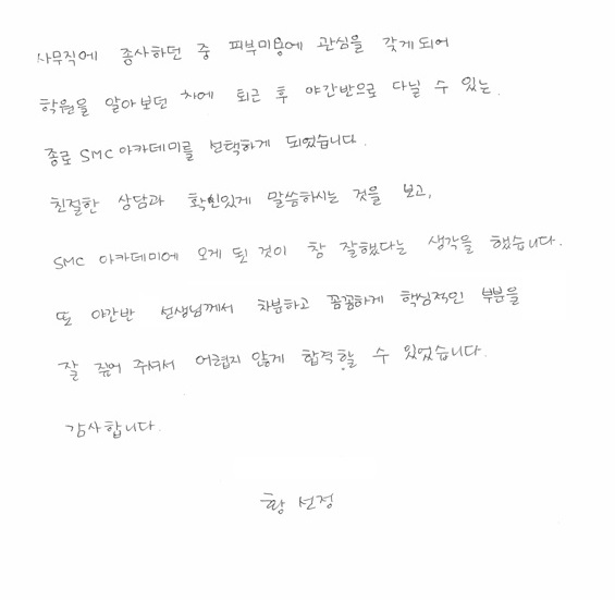 SMC아카데미에 오게 된 것이 참 잘했다는 생각을 했습니다.