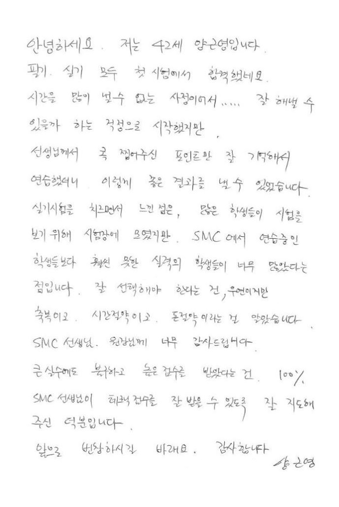 합격!! 한번에 국가자격증취득 양근영님!! [주말반~]