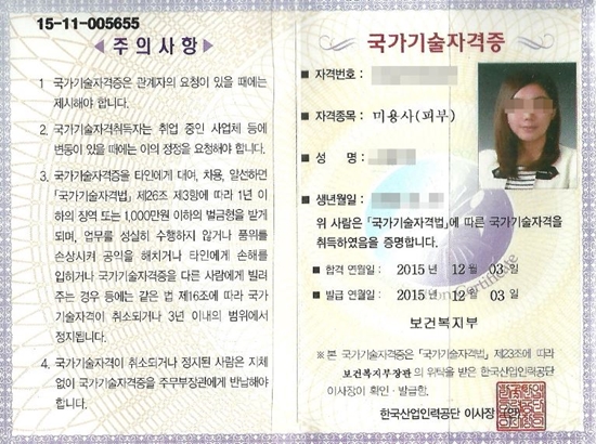 합격! 국가자격증 취득, 황지희님(야간반)! 피부국가자격증 후기자필 |
