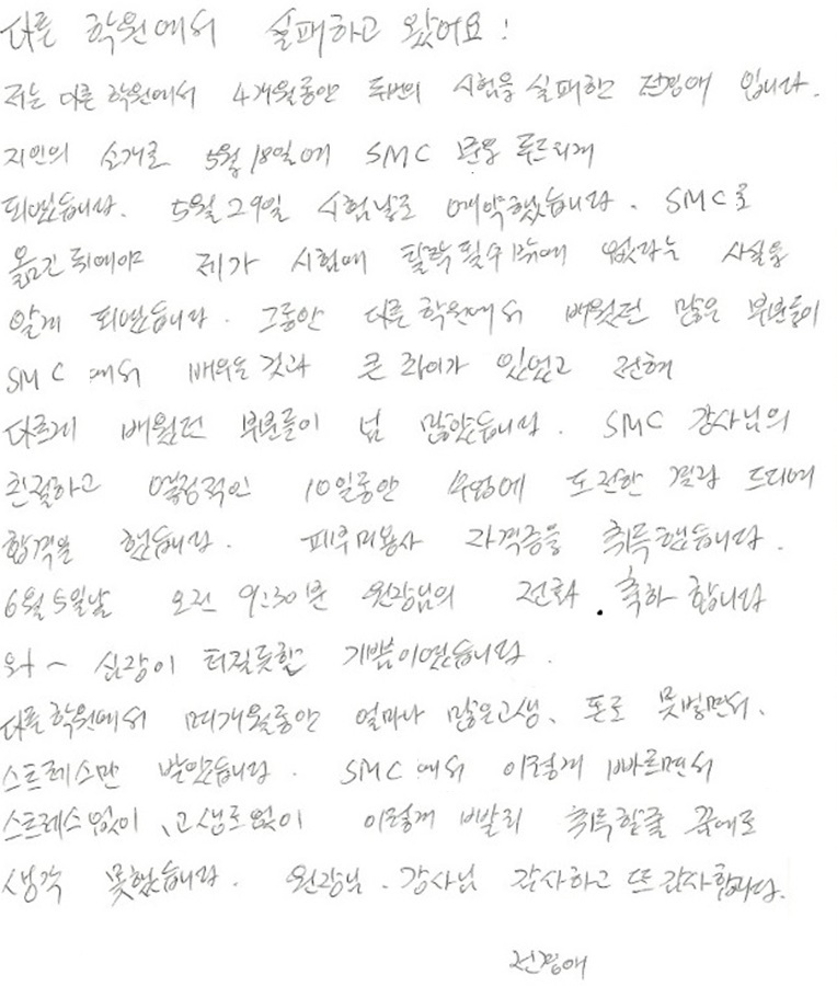 속성 합격!! 한번에 국가자격증취득 전경애님!! ★★★★★ 다른학원4개월 다니다오신분