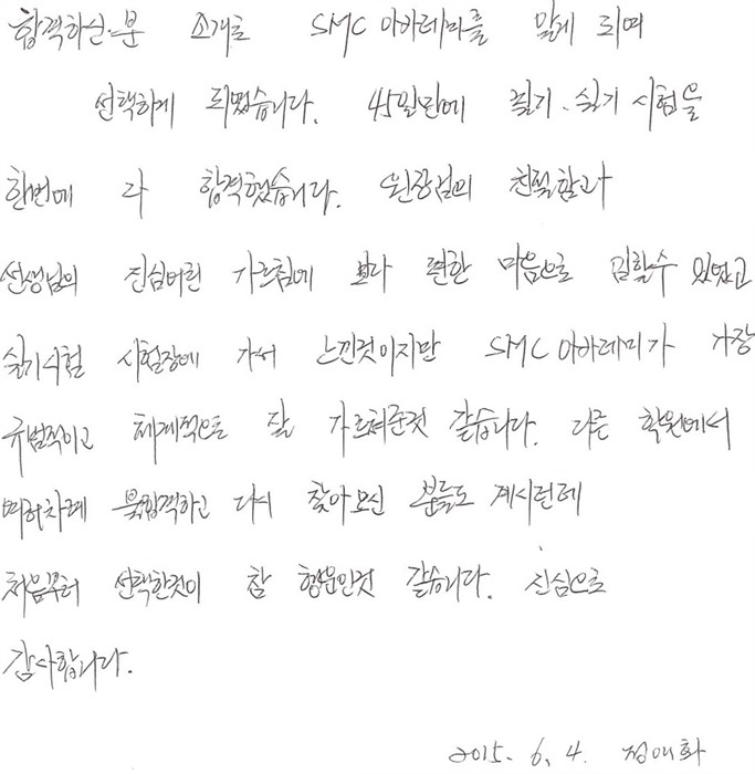 강남SMC아카데미 구로디지털단지역점서울시 관악구 시흥대로 558-1 G밸리마인드 5층, 505호사업자등록번호 : 772-11-01570