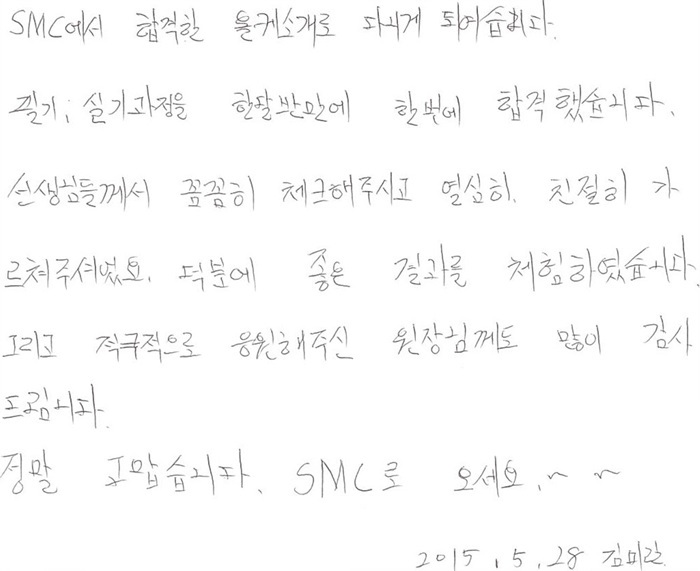 • 강남SMC아카데미 구로디지털단지역점서울시 관악구 시흥대로 558-1 G밸리마인드 5층, 505호사업자등록번호 : 772-11-01570