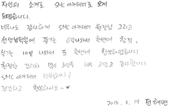 • 강남SMC아카데미 구로디지털단지역점서울시 관악구 시흥대로 558-1 G밸리마인드 5층, 505호사업자등록번호 : 772-11-01570