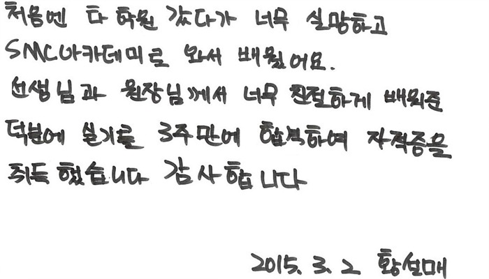 속성 합격!! 한번에 국가자격증취득 황설매님!! ★★★★★ [다른학원다니다 오신분~]