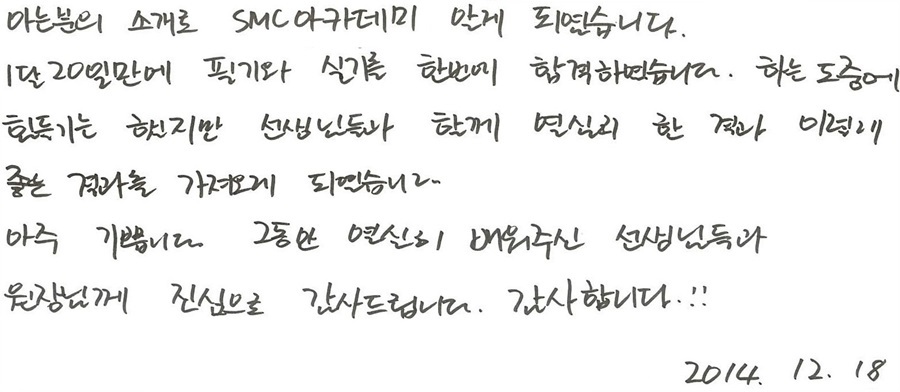 • SMC아카데미 본점서울시 종로구 수표로 120 내인빌딩 7층사업자등록번호 : 480-54-00382